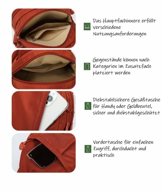 Drei-in-Eins-Multifunktionsdesign: Es unterstützt den flexiblen Wechsel zwischen zwei Schultergurten, einem Schultergurt und der Umhängetaschen-Trageweise und wird so den Anforderungen verschiedener Anlässe gerecht.