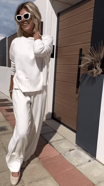 Aus weichem Kaschmir-Mix-Gewebe gefertigt, bietet dieses Pullover-Set luxuriöse Wärme und zeitlose Eleganz 🌟 - perfekt für zwanglose Ausflüge oder stilvolles Entspannen.
